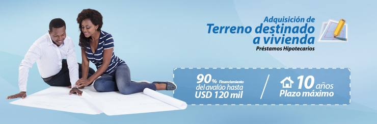 Ya puedes tener el terreno perfecto para construir tu vivienda a futuro con el Préstamo Hipotecario Biess para Adquisición de Terreno destinado a vivienda, con el 90% de financiamiento del avalúo hasta USD 120.000, con un plazo máximo de10 años, la cuota más baja y las mejores condiciones del mercado.